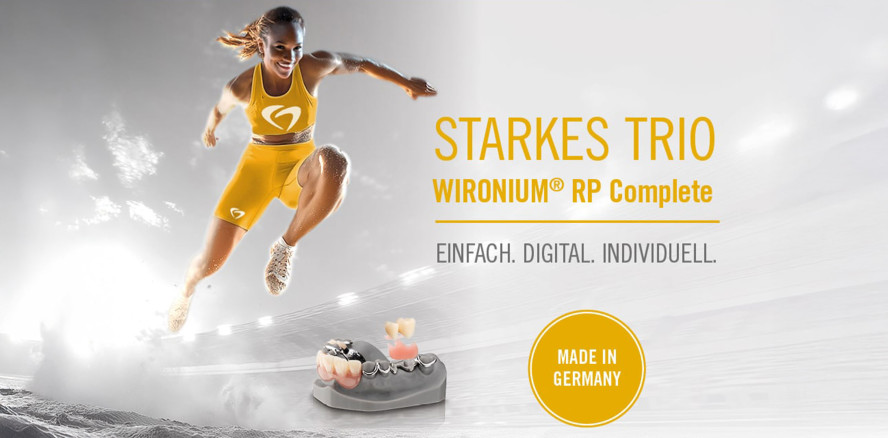 Mit WIRONIUM® RP Complete bietet BEGO ein innovatives, modulares System für die digitale Fertigung von Teilprothesen. SLM-gefertigte Gerüste kombiniert mit 3D-gedruckten Zähnen und Gingiva sorgen für passgenaue Lösungen mit minimalem Nachbearbeitungsaufwand.