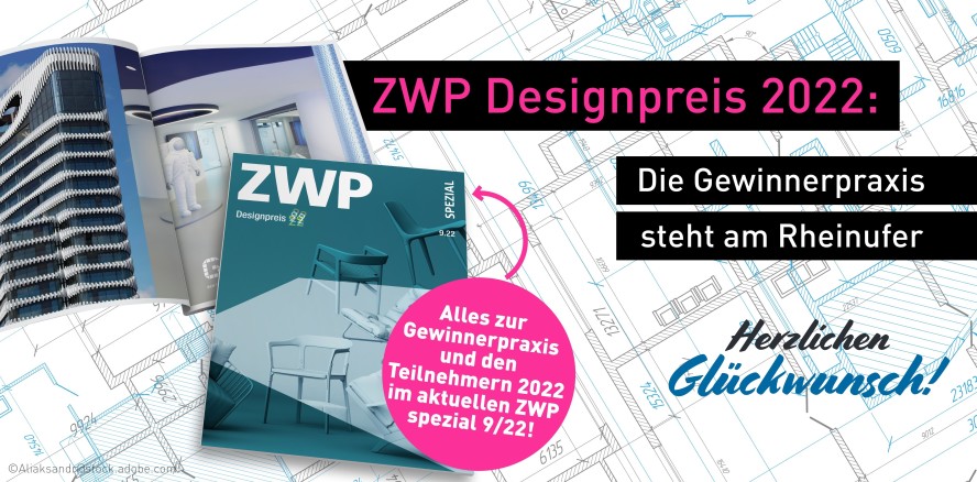Es ist soweit! Die Gewinnerpraxis des diesjährigen ZWP Designpreises steht fest: Wir gratulieren der Düsseldorfer Zahnarztpraxis RKM 740 Zahnmedizin von Dr. Michael Alte zum Titel „Deutschlands schönste Zahnarztpraxis 2022“.