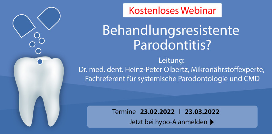 Auch dieses Jahr wird Dr. med. dent. Heinz-Peter Olbertz wieder Ihre Fragen im kostenlosen Online-Seminar „Behandlungsresistente Parodontitis? Hilfe von innen mit der Mikronährstofftherapie“ beantworten.