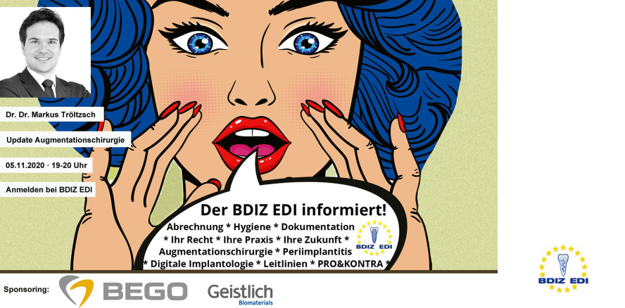 Ein Update zu den verschiedenen Augmentationsverfahren gibt Dr. Dr. Markus Tröltzsch, Vorsitzender der Akademie Praxis und Wissenschaft der DGZMK, in dem Online-Seminar der Reihe „Der BDIZ EDI informiert“ am 5. November 2020.