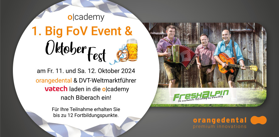 Das sollte kein Anwender verpassen, der sich für großvolumige DVT interessiert. Am 11. und 12. Oktober 2024 lädt orangedental mit dem Weltmarktführer vatech zum 1. Big FoV Event & Oktoberfest ein.