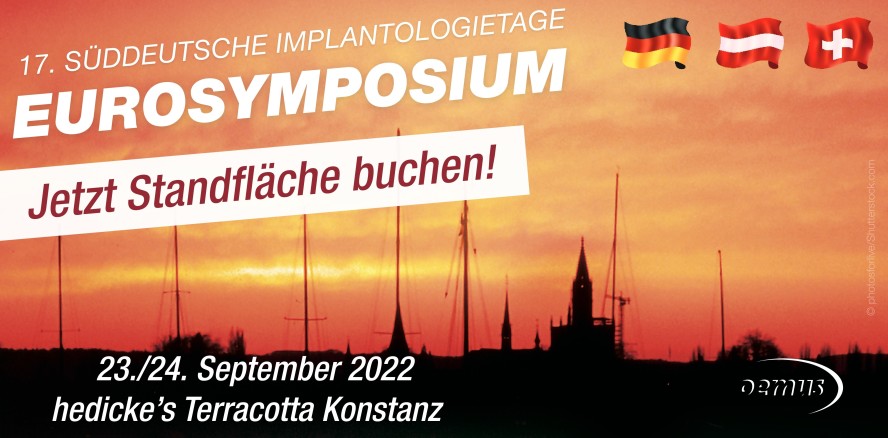 Am 23./24. September 2022 findet im hedicke’s Terracotta in Konstanz das EUROSYMPOSIUM/17. Süddeutsche Implantologietage statt. Buchen Sie jetzt Ihren Ausstellungsstand für die am Freitag und Samstag stattfindende Industrieausstellung!