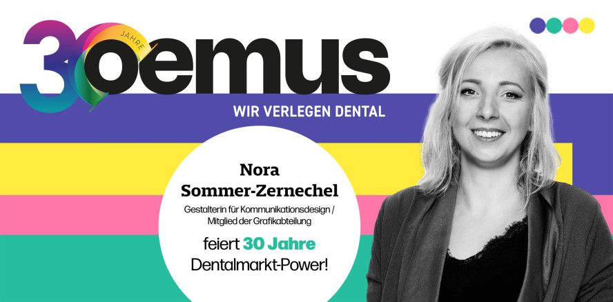 Zahntechnik trifft kreativen Flow – als Grafikerin für die zahntechnischen Medien designt Nora Sommer-Zernechel seit über zehn Jahren Printprodukte für die OEMUS MEDIA AG. 2014 hat sie im Verlag zunächst für den Bereich der Eventabteilung begonnen und sich seither als fester Bestandteil des Kreativteams etabliert.