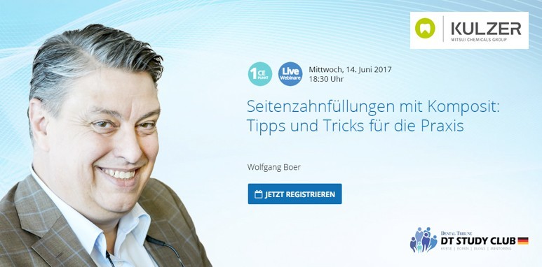 Einen Überblick über den Stand der Technik von Seitenzahnfüllungen mit Komposit erhalten interessierte Zahnmediziner am 14. Juni, im Rahmen eines kostenfreien Webinars. Referent Wolfgang Boer wird u.a. Tipps zur Vermeidung von Frühkontakten oder zum Vorgehen bei Kompositreparaturen geben.