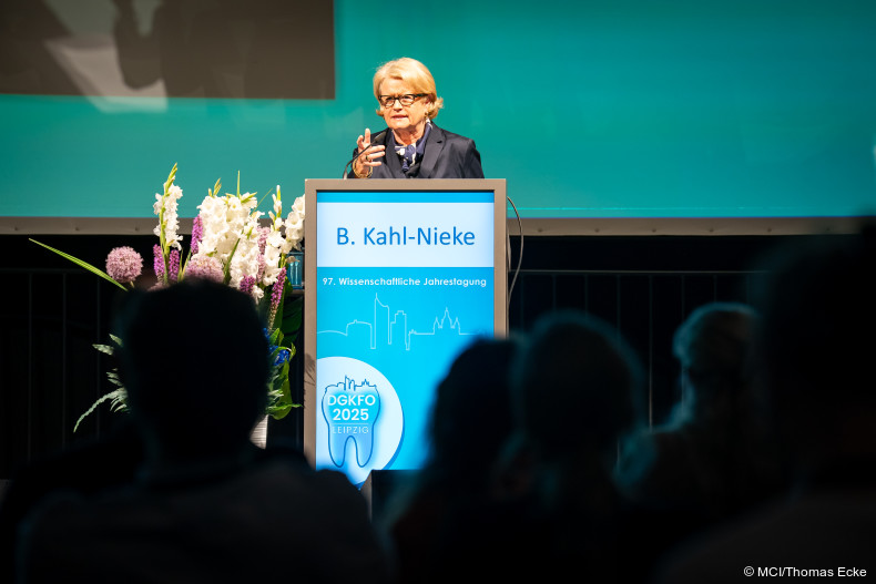 Eröffnet wurde das erste Hauptthema von Prof. Dr. Bärbel Kahl-Nieke und ihrem Vortrag „Mundgesundheit durch kieferorthopädische Frühbehandlung – Update 2025“. Prof. Kahl-Nieke gab ein umfassendes Update zur kieferorthopädischen Frühbehandlung und deren Bedeutung für die Mundgesundheit. Der Vortrag beleuchtete unter anderem den aktuellen wissenschaftlichen Stand sowie gesundheitspolitische Entwicklungen und mündete in einer klaren Empfehlung zur gezielten Frühintervention bei Risikopatienten. Mit der scherzhaften Bemerkung direkt zu Beginn des Vortrages, dass sie sich wie eine Influencerin fühle, weil sie für die Frühbehandlung in der KFO werbe, unterstrich sie ihre Leidenschaft und ihr Engagement für das Thema. Bereits 1996 zeigte sie mit ihrem Team auf, dass die kieferorthopädische Frühbehandlung insbesondere bei skelettalen und dentoalveolären Entwicklungs- und Funktionsstörungen indiziert ist, wenn die Gefahr einer Progredienz oder funktionellen Verschlechterung besteht. In ihrem Vortrag verwies sie auf eine aktuelle Studie, die 2024 im Journal of Pharmacy and BioAllied Sciences veröffentlicht wurde und bestätigt, dass diese Einschätzung auch heute noch Gültigkeit hat. Prof. Kahl-Nieke betonte zudem die Relevanz der im Dezember 2021 veröffentlichten „S2k-Leitlinie Ideale Zeitpunkte und Maßnahmen der kieferorthopädischen Diagnostik“, die erstmals konsensbasiert Empfehlungen zum Timing kieferorthopädischer Maßnahmen formulierte. Im Juni 2025 folgte eine weitere Aktualisierung dieser Leitlinie, die sich insbesondere mit den „idealen Zeitpunkten“ der Therapie und der Nutzenbewertung der Frühbehandlung befasst.