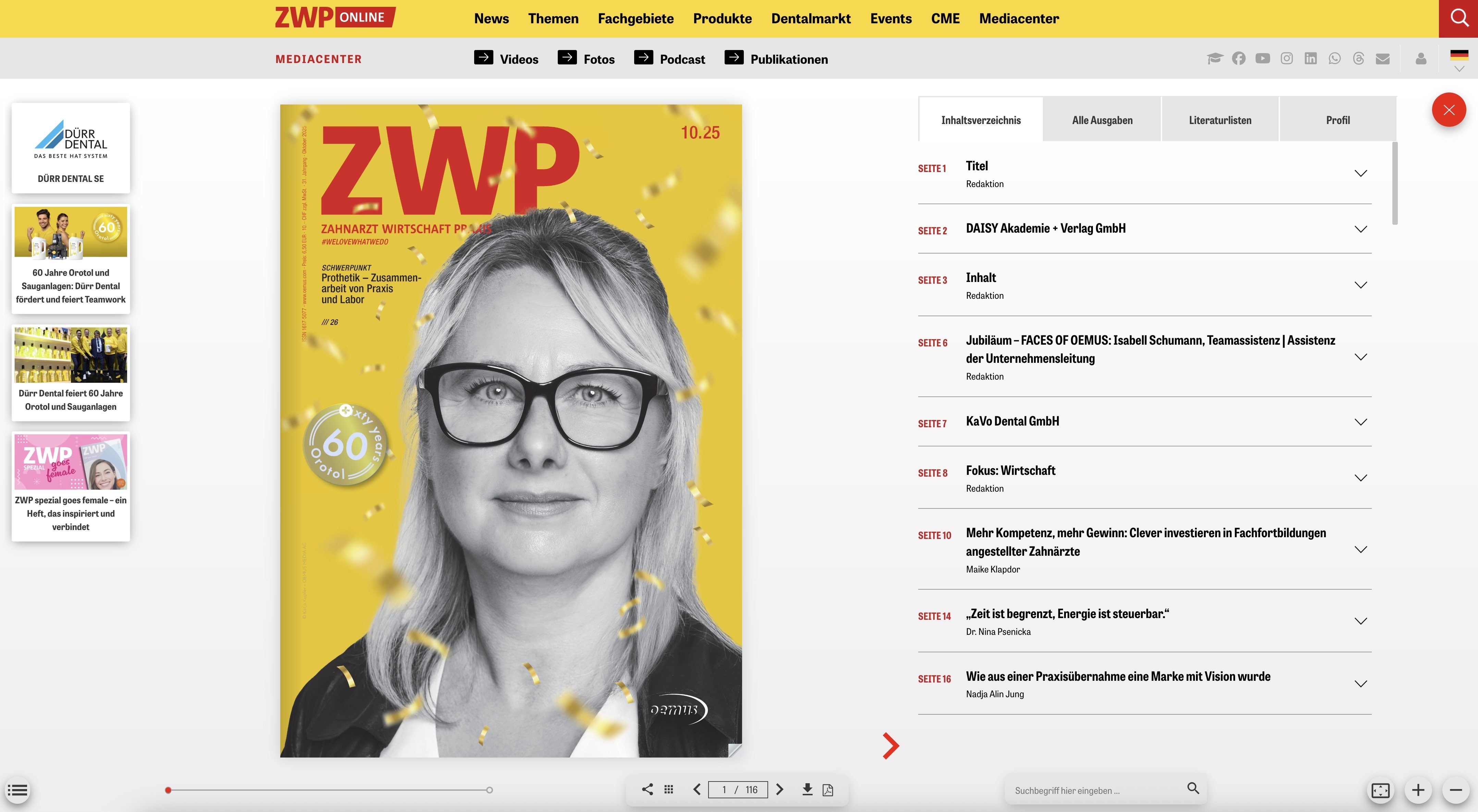 Das ZWP spezial 10/25 ZWP goes female richtet den Blick auf das weibliche Agieren in der modernen Dentalwelt. Dabei kommen Protagonistinnen des Führungs- und Finanzcoachings, der Industrie, der Standespolitik sowie der Gründerszene zu Wort und geben so Einblicke in die Möglichkeiten und Machbarkeiten ihres (Mit-)Wirkens in einer Zahnmedizin, die durch das Aufrücken weiblicher Perspektiven und das Einbringen vielfältiger Stimmen eine starke Zukunft durch Vielfalt verspricht.
