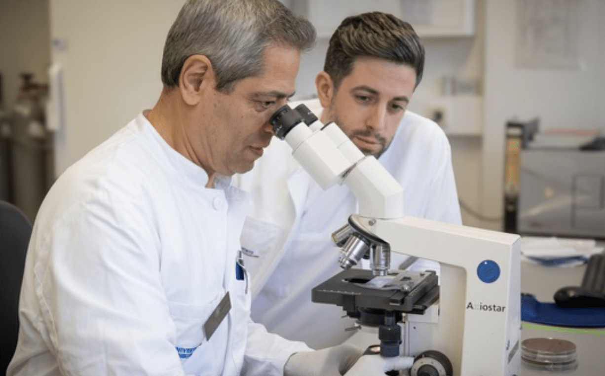 „Es gibt im Mund noch immer viele Bakterien, bei denen wir nicht wissen, ob sie uns schützen oder krank machen. Dieses Projekt ist ein wichtiger Schritt, um Licht ins Dunkel zu bringen“, sagt Prof. Dr. Fabian Cieplik, Ärztlicher Direktor der Klinik für Zahnerhaltungskunde und Parodontologie des Universitätsklinikums Freiburg (rechts im Bild zu sehen neben Prof. Dr. Ali Al-Ahmad, ©Universitätsklinikum Freiburg).
