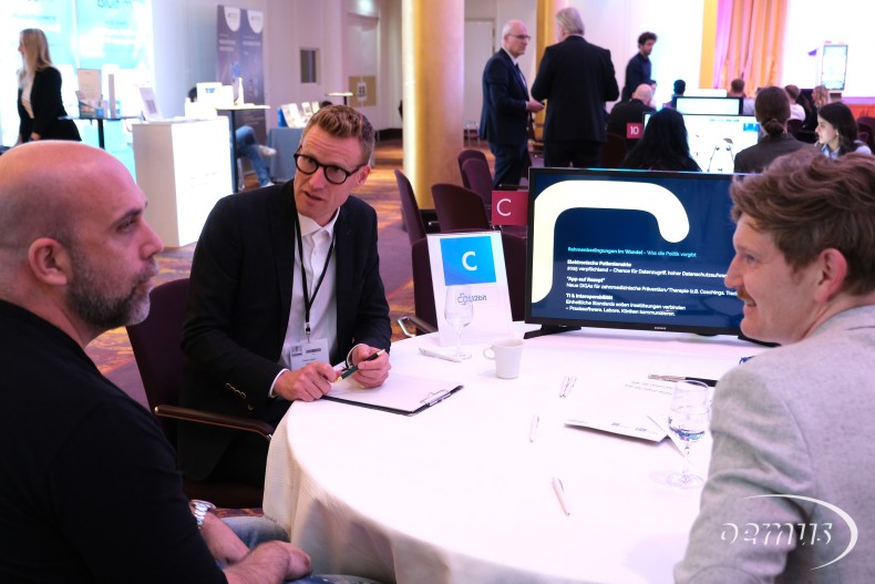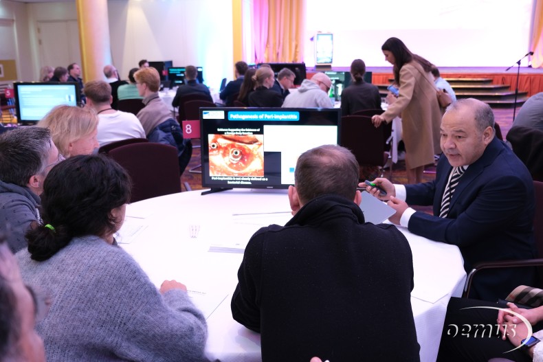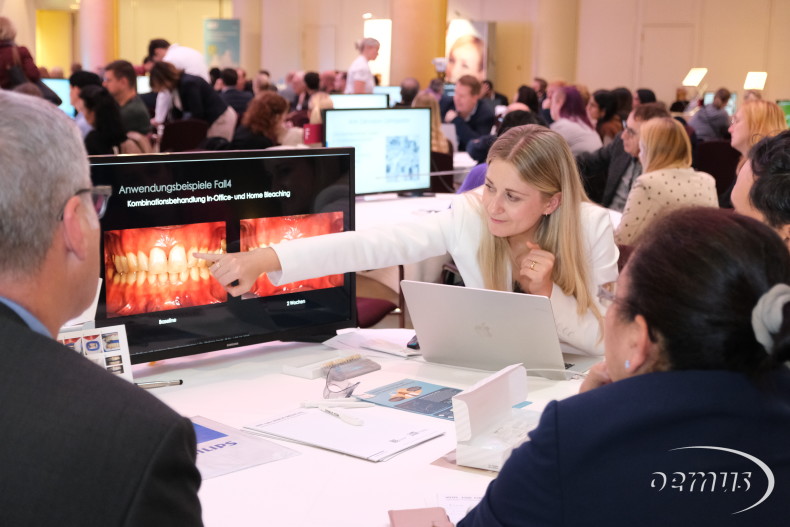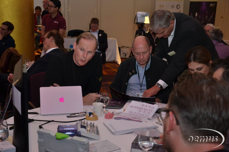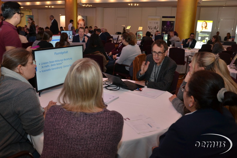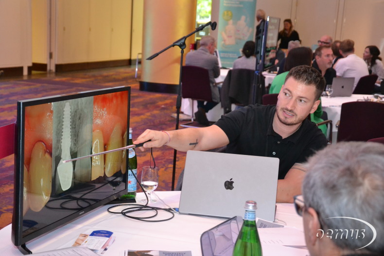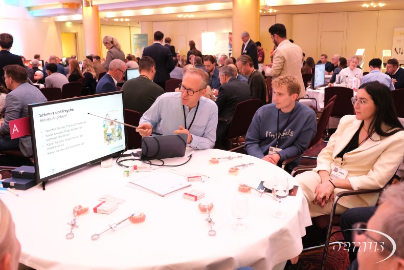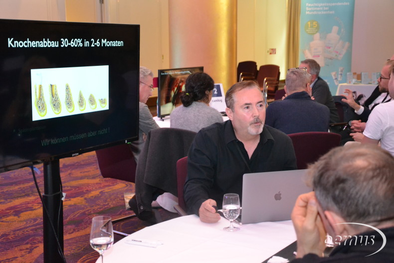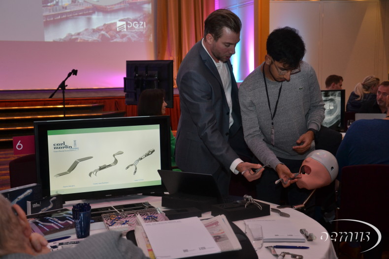 Für manchen Teilnehmer klassischer Frontalkongressformate ein ungewohnter Anblick – statt der üblichen auf die Bühne ausgerichteten parlamentarischen Bestuhlung nun Rundtische im Sinne einer Bankettbestuhlung! An diesen fanden in drei Staffeln Tischdemonstrationen zu unterschiedlichsten Spezialthemen der Implantologie statt. Jede ausstellende Firma hatte einen Tisch zur Verfügung gestellt bekommen und Referenten verpflichtet, die die Demonstrationen durchführten – hier erwiesen sich die unmittelbar zur Demonstration stattfindenden und auch die anschließenden Diskussionen und Austausche als sehr Erkenntnis bringend. Ein neues Format, welches erneut auf hohe Akzeptanz sowohl der Kongressteilnehmer als auch der Dentalaussteller stieß.