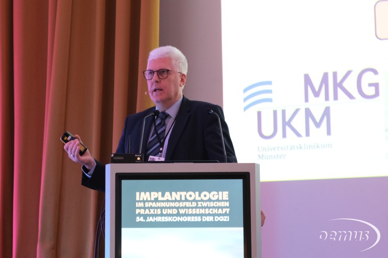 Auch Prof. Dr. Dr. Johannes Kleinheinz hatte ganz wie sein Vorredner das Weichgewebe im Fokus, aber nicht nur dieses, der an der Universität zu Münster tätige Hochschullehrer nahm auch das Hartgewebe in seine Ausführungen auf. Kleinheinz sprach über „Knochen und Weichgewebe – welche biologischen Zusammenhänge bestehen?“