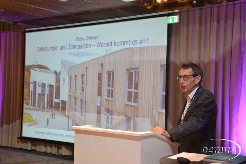 Der Samstag stand ganz im Zeichen von „Wissenschaft trifft Praxis“ und bot ein dichtes und facettenreiches Vortragsprogramm, das den Schwerpunkt auf evidenzbasierte Mundhygienestrategien legte. Nach der Eröffnung durch Prof. Zimmer folgte sein Vortrag „Zahnbürsten und Zahnpasten: Worauf kommt es an?“ Anschließend diskutierte Prof. Dr. Nicole B. Arweiler/Marburg die Rolle von Mundspüllösungen. Prof. Christian Gernhardt/Halle (Saale) referierte über die Intervention bei Wurzelkaries. Prof. Thorsten M. Auschill/Marburg gab Einblicke in Ursachen und Therapie von Rezessionen. Prof. Dr. Gregor Petersilka/Würzburg schloss an mit dem Thema : „Kaum Biofilm und trotzdem Parodontitis – Wie kommt das?“ Prof. Mozhgan Bizhang/Witten widmete sich der Bedeutung des Interdentalraums in der Mundhygiene. Es folgte ein weiterer Vortrag von Prof. Petersilka mit dem Titel „Mundduschen: Wunderwaffe oder nutzlos?“ Zum Abschluss beleuchtete Prof. Dr. Gerhard Schmalz/Brandenburg a. d. Havel die Rolle der Rauchentwöhnung in der Zahnmedizin und Optionen der Schadensminimierung.