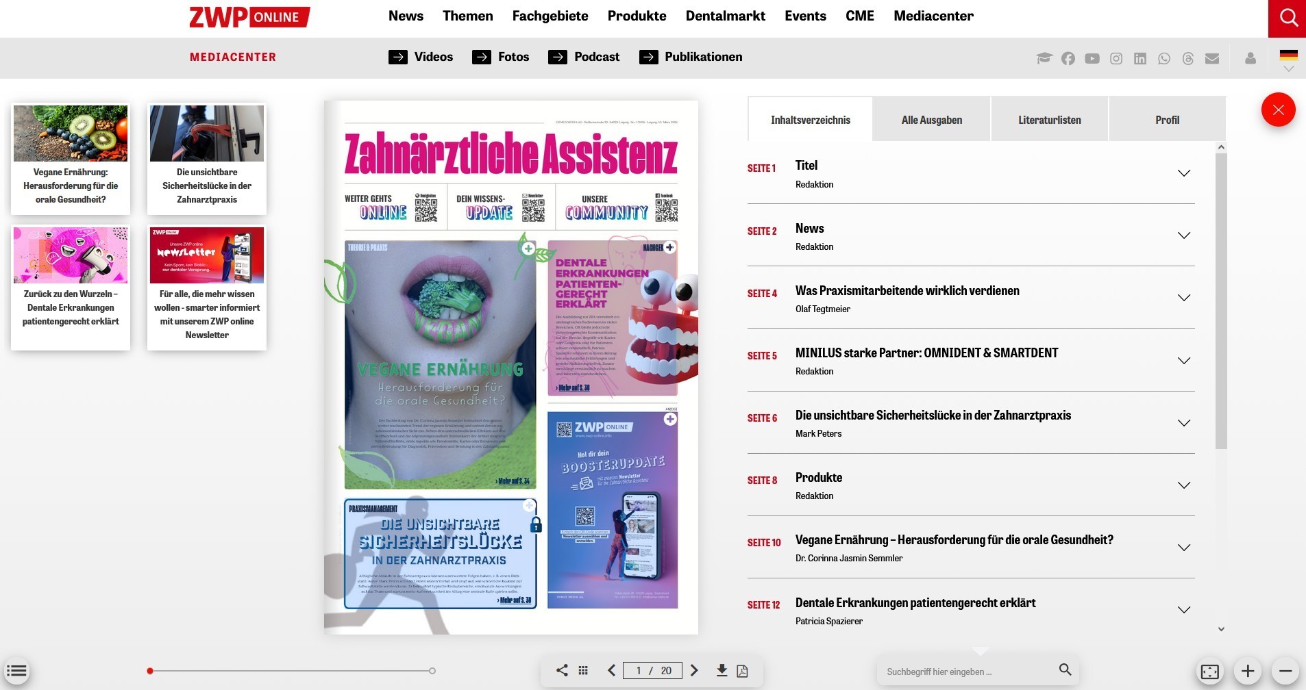 In der Ausgabe finden sich neben den neuesten Produkten verschiedenster Unternehmen auch jede Menge spannende Veranstaltungstipps für das ganze Praxisteam, z.B. den brandneuen Prophylaxe Power-Team-Day.