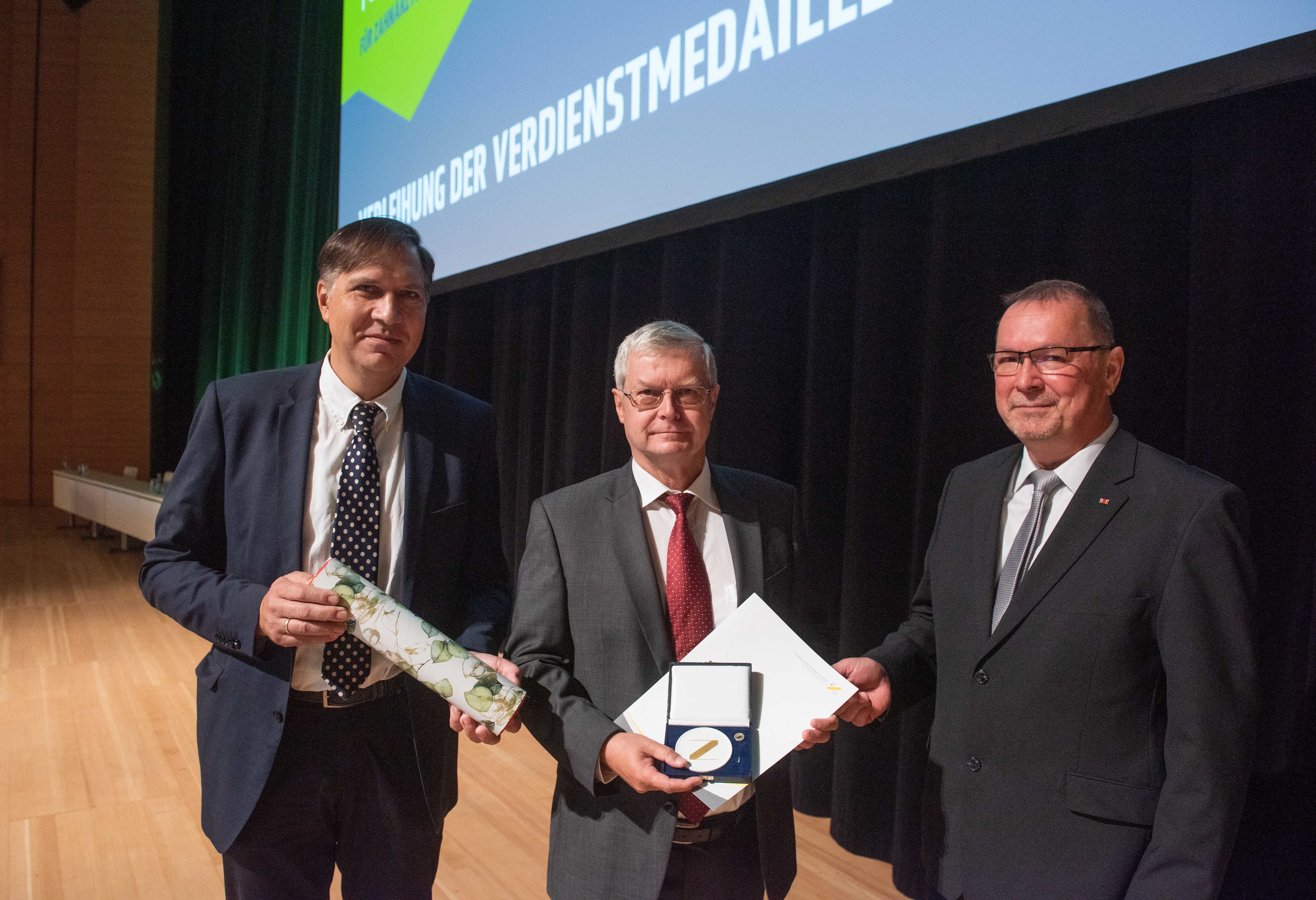 „Die Verdienstmedaille soll sichtbar machen, wie vielfältig und wertvoll das Engagement in unserem Berufsstand ist, sei es in der Praxis, in der Wissenschaft oder im Ehrenamt. Mit der heutigen Premiere wurden Persönlichkeiten ausgezeichnet, die dafür beispielhaft stehen“, sagt LZKS-Vizepräsident Dr. Christoph Meißner.