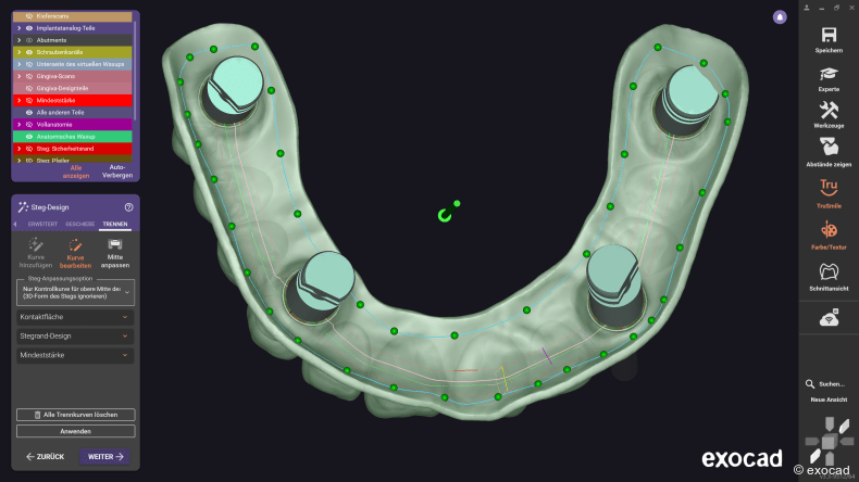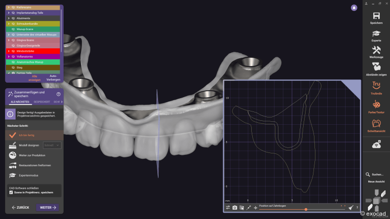 Der Split-Prothesen-Workflow ist effizient, präzise und vollständig in die exocad Umgebung integriert. Er lässt sich somit problemlos mit anderen Restaurationstypen kombinieren, etwa mit zementierten Kronen und Brücken.