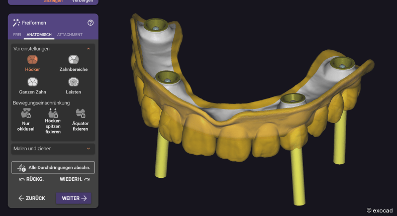 Generell bietet exocad viele Ressourcen zum Lernen: die Wiki-Seite, unseren YouTube-Kanal und personalisierte Schulungen. Probieren Sie es einfach aus.