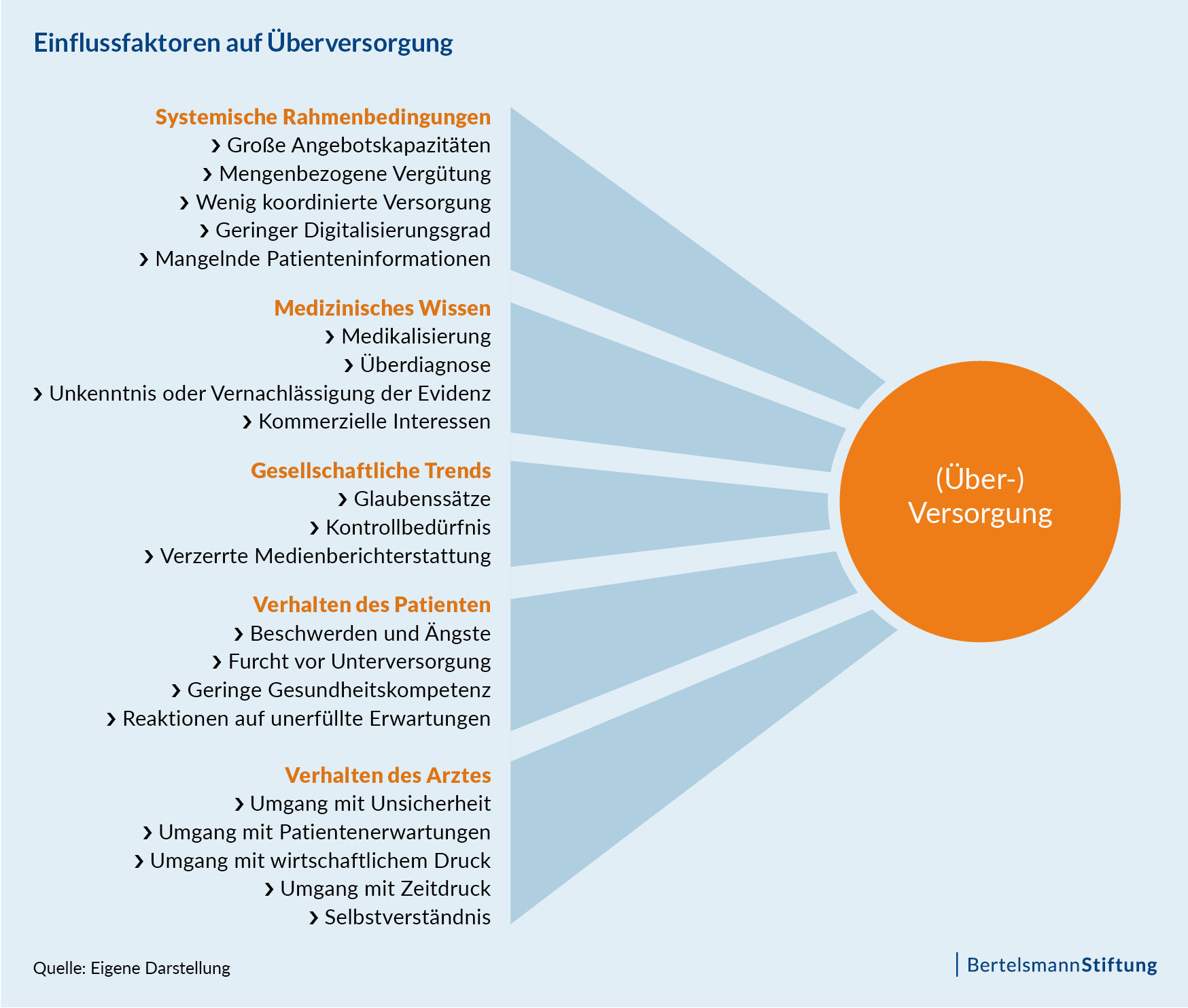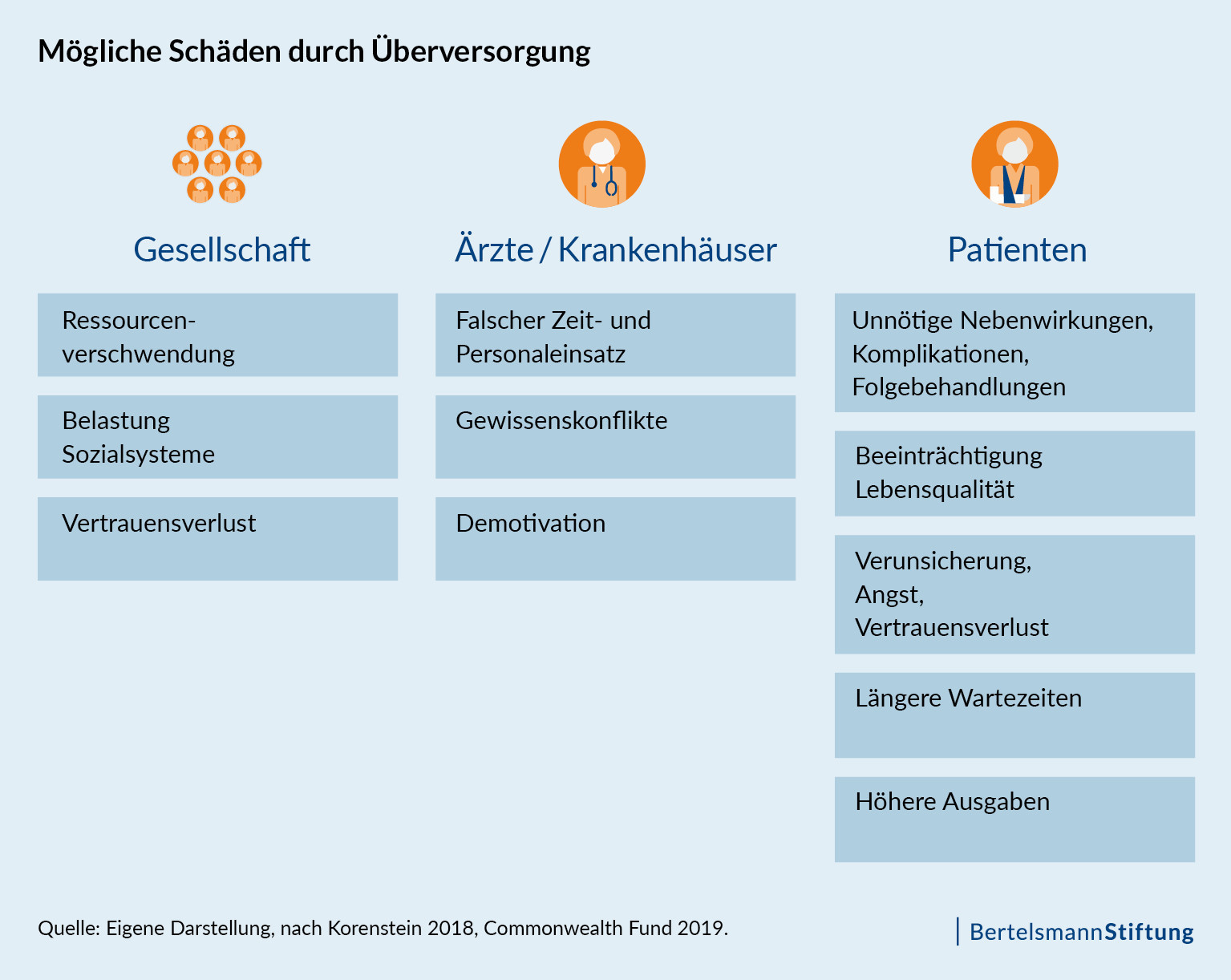 In Deutschland wird unnötig diagnostiziert und operiert. Überflüssige medizinische Leistungen gehen mit Belastungen und Gefahren für Patienten einher. Sie verschwenden wertvolle Ressourcen im Gesundheitssystem, die für tatsächlich notwendige Behandlungen fehlen. Nach unseren neuen Untersuchungen sind vielfältige Ursachen für Überversorgung verantwortlich.