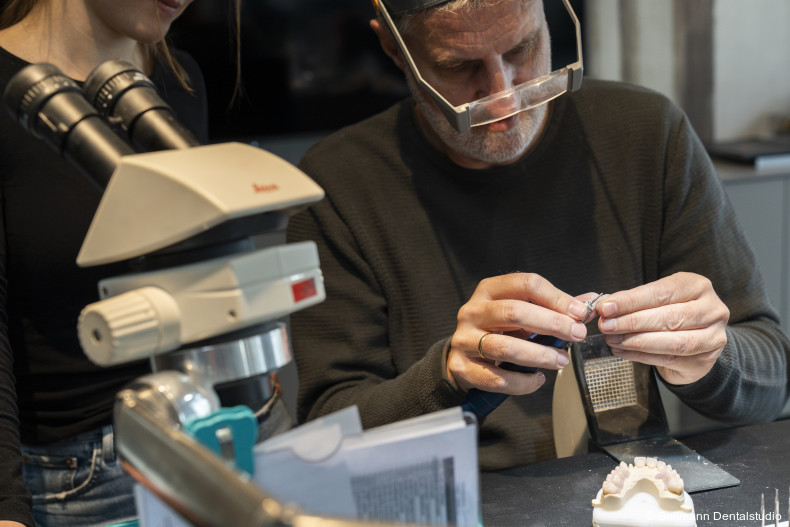 1990 war ich auf der Suche nach einem kreativen Beruf und hatte bereits Ambitionen für eine handwerkliche Laufbahn. Meine heutige Frau – sie und ich sind bereits seit Schulzeiten ein Paar – machte damals eine Ausbildung zur Zahnarzthelferin und erzählte voller Begeisterung vom Zahntechniker der Praxis. Also habe ich bei Dentaltechnik Schierloh in Nordenham ein Praktikum absolviert und war ab Tag 1 schockverliebt in den Beruf. Die Prüfung habe ich 1993 als Kammersieger bestanden und wollte auf jeden Fall mehr. Immer wenn ich die Bilder in den Fachzeitschriften angeschaut habe, wusste ich: Das will ich auch! Mein Anspruch ist es seitdem bis heute, jeden Tag ein besserer Zahntechniker zu sein als den Tag davor.