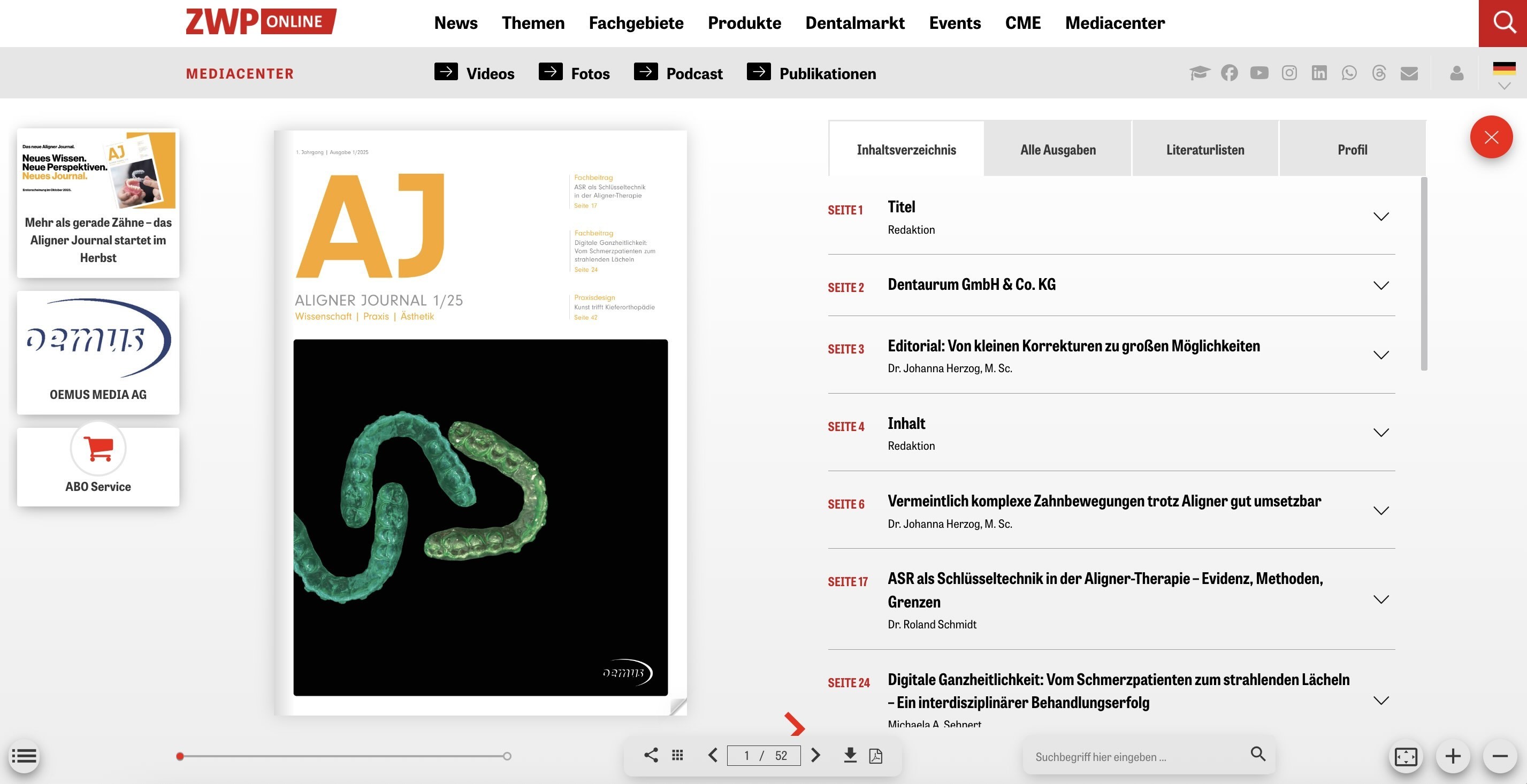 Das Heft ist ab sofort erhältlich und kann über den OEMUS-Shop bezogen werden. ZWP online-Leser können die aktuelle Ausgabe vorab online als ePaper durchblättern und profitieren von einer beispiellosen Vernetzung sowie vielen Zusatzinformationen.