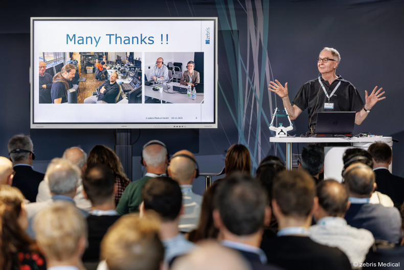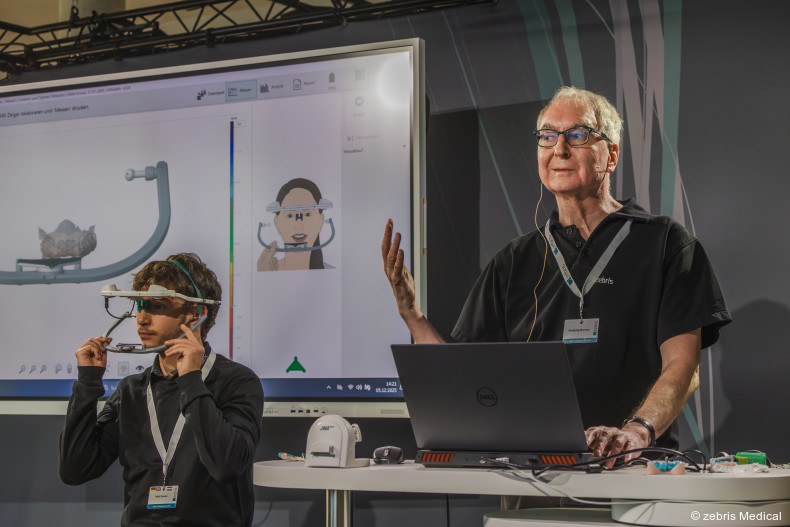 Zur offiziellen Eröffnung des Symposiums 2025 präsentierte Wolfgang Brunner (Geschäftsführer zebris Medical) die neuesten Entwicklungen des JMA-Optic Systems, darunter Jaw Templates für teil- und unbezahnte Kiefer, neue Attachments sowie den erweiterten Schienendesigner für Positionierungsschienen, Face-Scans, die zebris Customer Plattform und erweiterte CAD-Schnittstellen. Außerdem gab er einen Ausblick auf 2026 mit dem neuen Designer für die Stützstiftregistrierung bei teilbezahnten Kiefern, einem Schlafschienen-Designer für funktionelle und komfortable Schlafapnoe-Therapie sowie dem kommenden Face Scanner und dem 4-Kanal-EMG-System. Ein besonderes Highlight war die Vorstellung des gemeinsamen Entwicklungsprojekts mit der Universität Greifswald – einem digitalen Palpationssystem für den Gesichtsbereich im Rahmen des geförderten ZIM-Programms, gezeigt als faszinierender Proto-Prototyp zur Erfassung physiologischer Bewegungen.