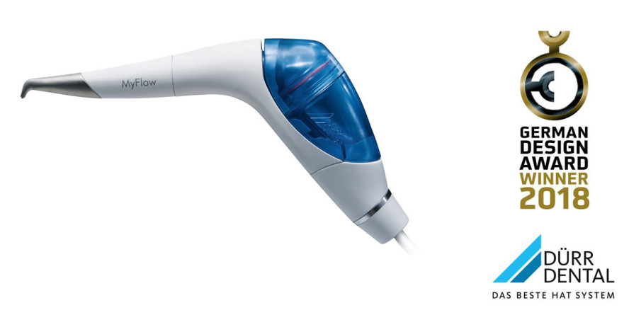 Mit dem neuen Pulver-Wasserstrahl-Handstück MyFlow als „Winner“ und dem Dampf-Sterilisator Hygoclave 90 als „Special Mention“ schafft es Dürr Dental dieses Jahr gleich zweimal den renommierten German Design Award zu erhalten.
