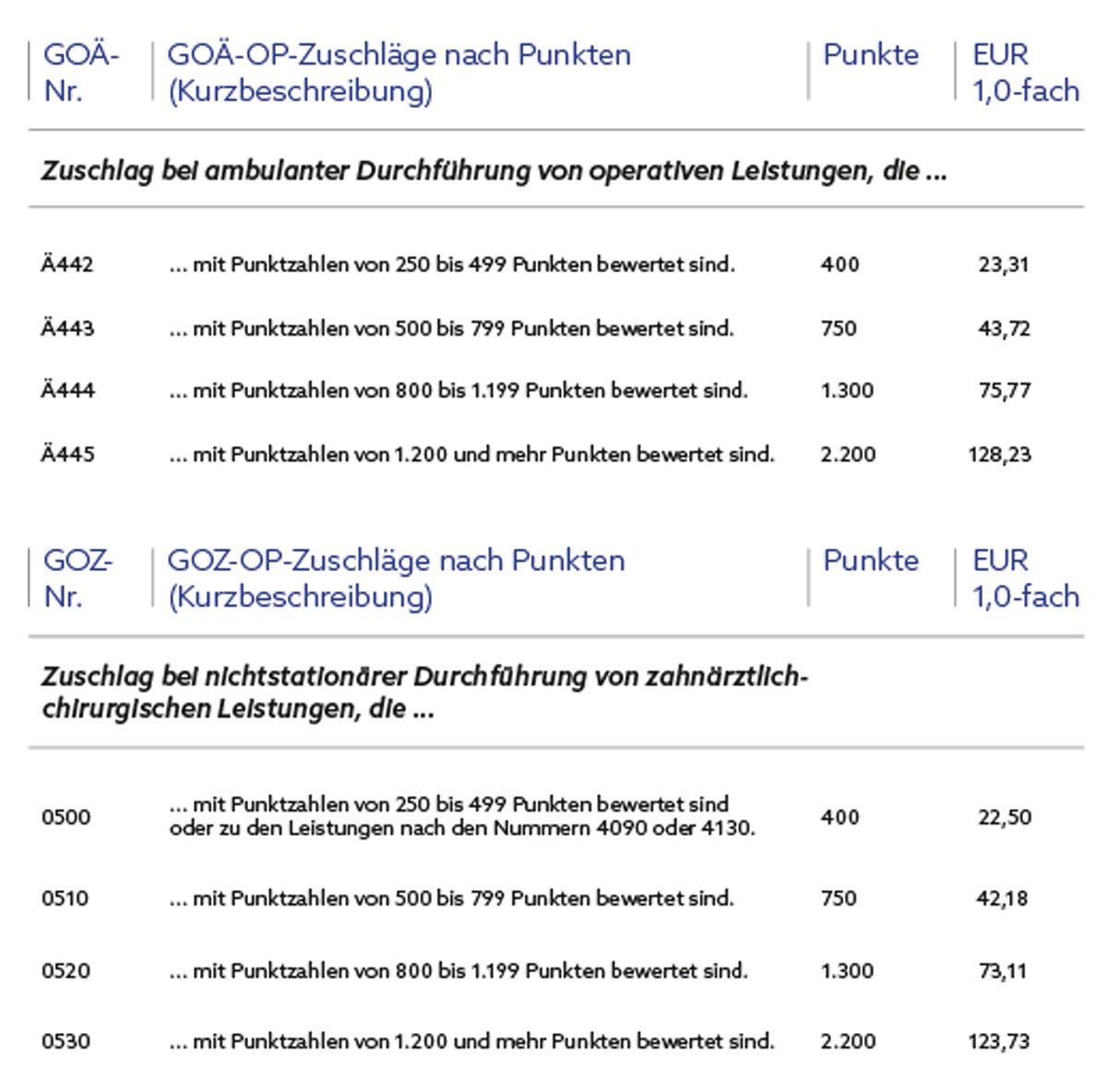 Um diese Kosten zu decken, hat der Verordnungsgeber sowohl in der GOZ als auch in der GOÄ die Berechnung von OP-Zuschlägen vorgesehen. Damit in der Praxis kein Geld verschenkt wird, müssen die Unterschiede und Gemeinsamkeiten in den Honorierungssystemen (GOZ und GOÄ) erkannt und berücksichtigt werden.