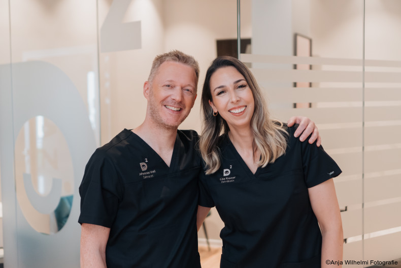 ZA Johannes Well: „Unsere Chemie hat von Anfang an gestimmt. Wir teilen die gleichen Werte, die Liebe zur Zahnmedizin und die Freude an echter Teamarbeit. Schon nach wenigen Monaten, in denen Lisa bei mir als angestellte Zahnärztin gearbeitet hat, war klar: Das passt einfach. Wir ticken ähnlich, haben denselben Anspruch an Qualität, Haltung und Miteinander – und denselben Wunsch, Zahnmedizin anders zu denken. Als ich mich räumlich vergrößern wollte, war die Idee einer gemeinsamen Praxis fast naheliegend. Es ging nicht nur um neue Räume, sondern um etwas Eigenes – eine Marke, die für unsere Werte steht.