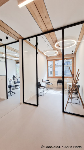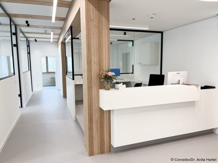 Für die Gründung arbeitete die Tübinger Zahnrztin mit dem Praxisplaner Considio zusammen. Dabei gestaltete sich die Zusammenarbeit als äußerst angenehm, stets verbindlich und auf den Punkt gebracht. Weitere Infos zu Considio auf: www.considio.de.